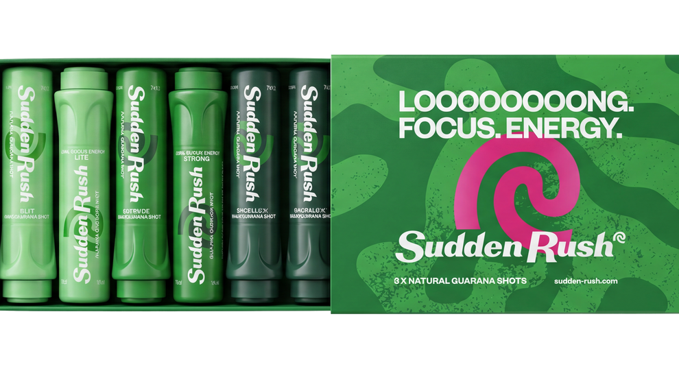 Meet the tiny shot that refuses to play small. SuddenRush is a natural guarana power-hit from the rainforest that flips the script on energy drinks: long, smooth focus, no chaotic buzz, no sad crash. One 11 ml ampoule disappears into your pocket but shows up when it counts—before a pitch, a night shift, a trick, a deadline—whenever your day suddenly decides it’s not over yet.